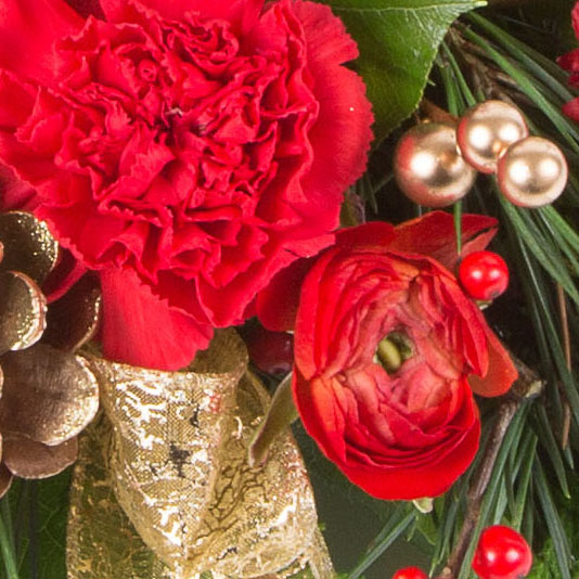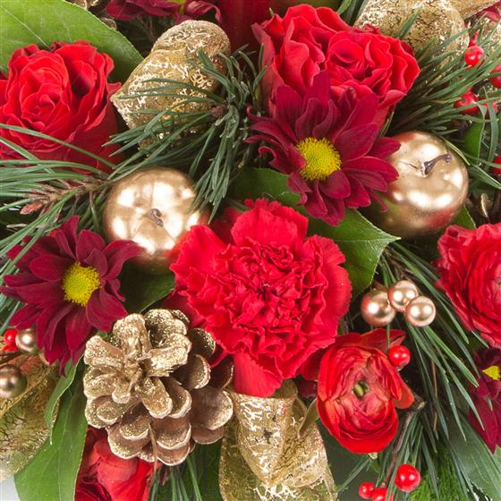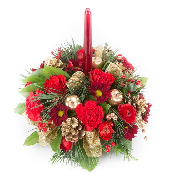 A traditional favorite, this spruce arrangement including cones and berries and xmas foliage is perfect as a table centre.